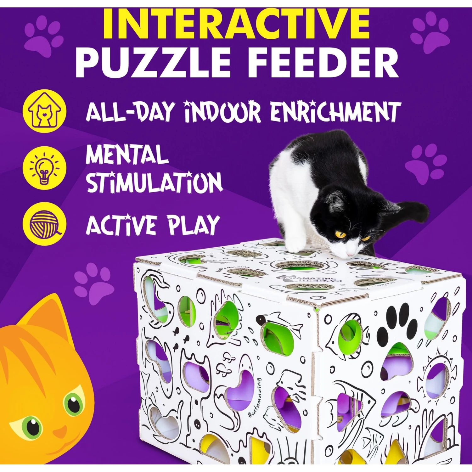 - Features nooks and crannies that are paw-fect for hiding kibble, treats, catnip, and toys.