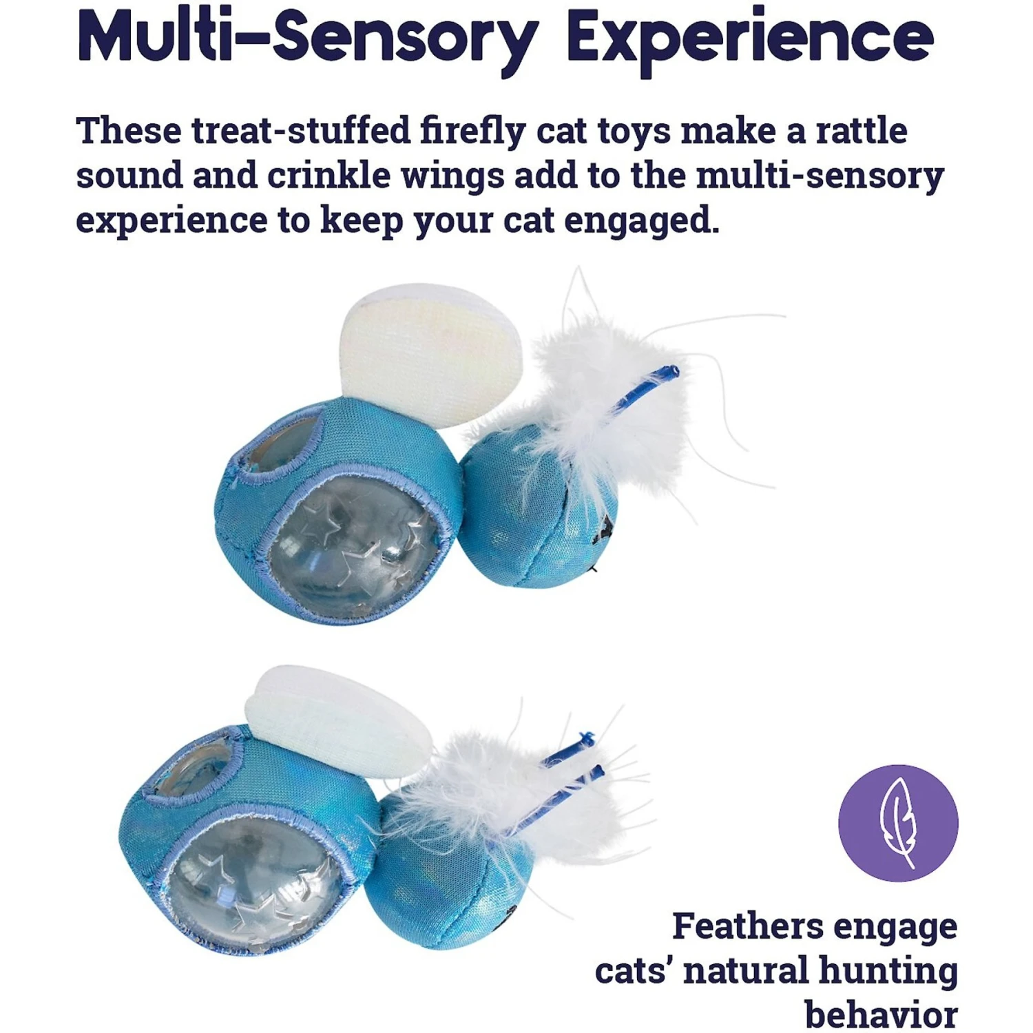 Your kitty companion will play all day with the Petstages Firefly Treat Stuffer Cat Toy. Between the crinkly wings, feathers, rattling sound, and a peek-a-boo tummy design, these toys are enticing and stimulating for kitties of all ages. Turn out the light for a fun glow-in-the-dark experience you’ll both enjoy.