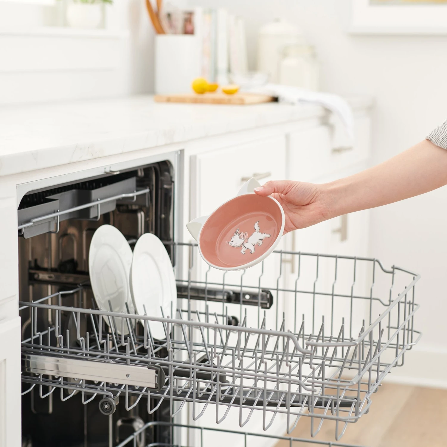 Your cat’s no common kitty! Elevate your cat’s dinnerware with a Disney’s Aristocats-themed bowl. This modern, ceramic bowl, available only at Chewy, features Marie from the Aristocats inside and adorable ears attached to the top. On the bottom, there’s a non-skid base to help cut down on mealtime messiness. And if dinner does get a little messy, it’s no problem—this bowl is top-rack dishwasher safe for easy cleaning!
