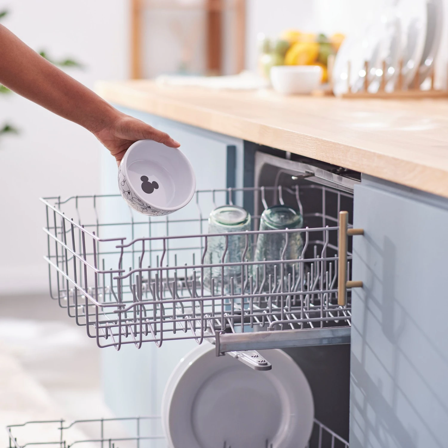 This Disney-themed ceramic bowl, available only at Chewy, features every kitty’s favorite mouse, Mickey Mouse, with a modern, line-style design that elevates their dinnerware. On the bottom, there’s a non-skid base to help cut down on mealtime spills. And if dinner does get a little messy, it’s no problem—this bowl is top-rack dishwasher safe for easy cleaning! Matching treat jar and dog bowls are available.