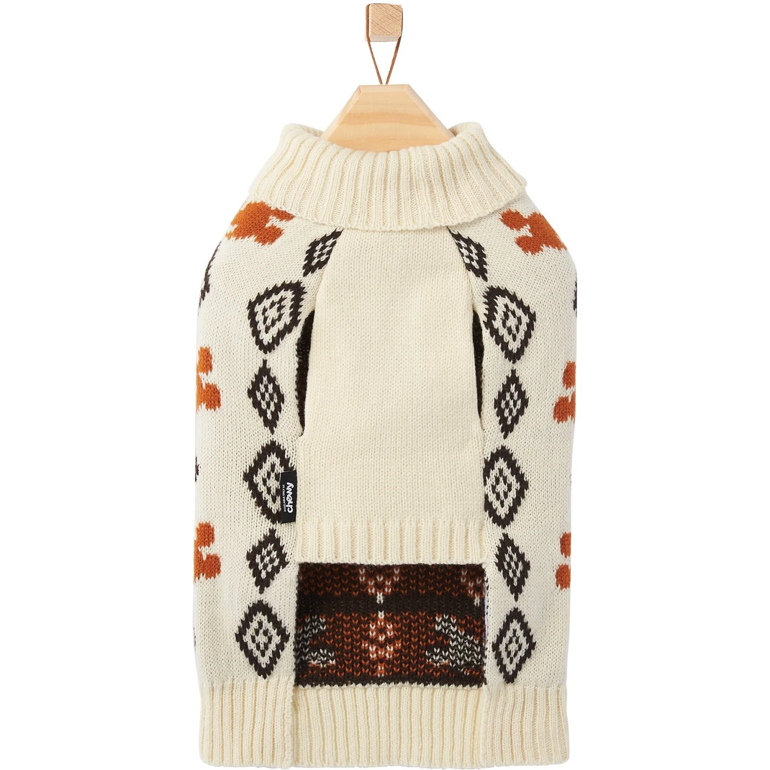 Bring some southwestern-inspired style to your pet’s wardrobe with this sweater, available only at Chewy and featuring none other than Mickey Mouse! This turtleneck-style sweater features red-brown silhouettes of Mickey and a black diamond pattern, plus it has a leash hole so they can strut their stuff all over town. With its pullover design, it goes on and comes off easily, so there’s less fuss when it’s time to dress up and head out to show off their Disney fandom.