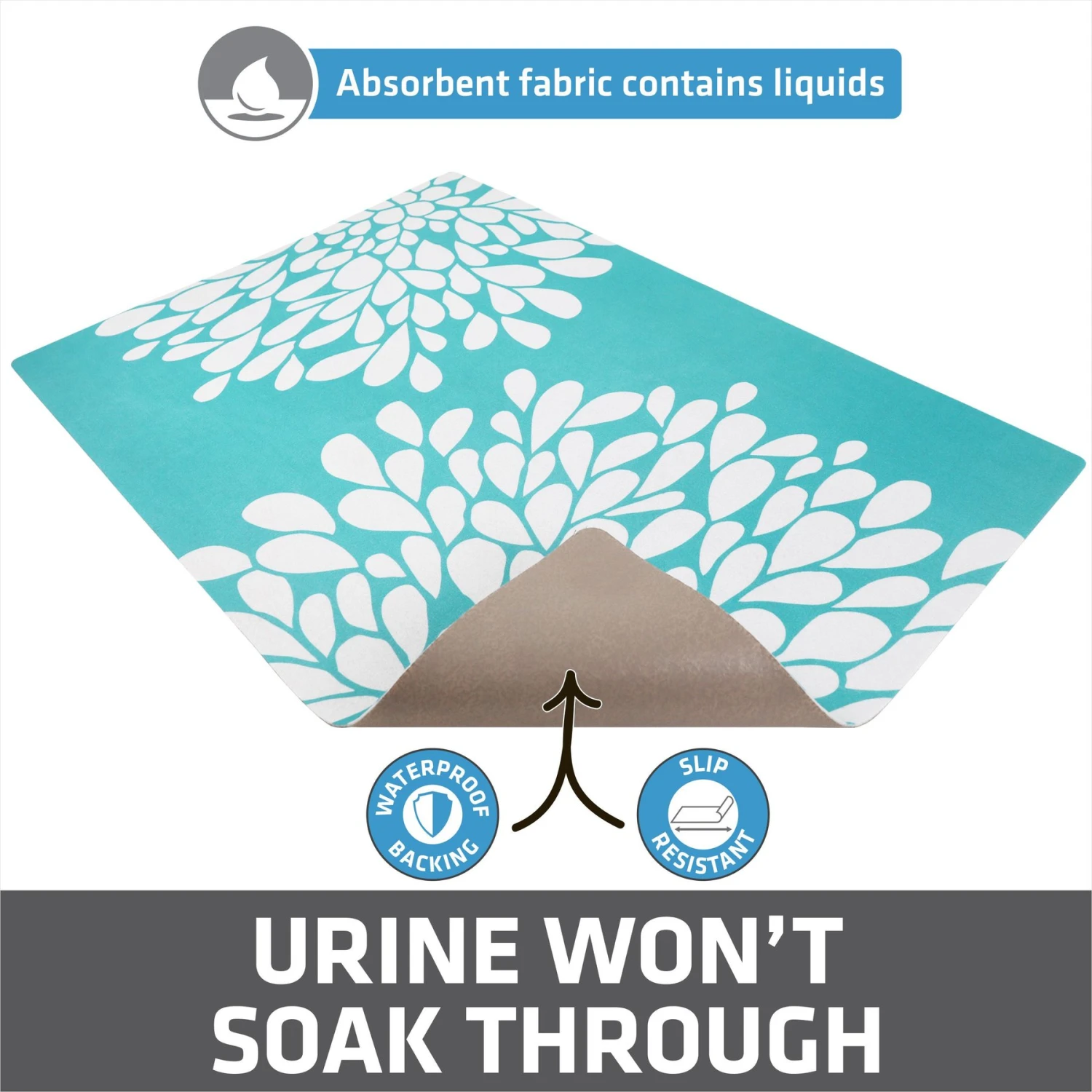 It’s easier to keep your house clean with the Drymate Protective & Decorative Cat Litter Mat. This soft, paw-friendly mat gently cleans litter from your kitty’s paws, helps reduce litter tracking, and protects your floors from scratches and spills. The ultra-absorbent design features a waterproof base that prevents spills and accidents from damaging the floor below. Plus, this mat has a slip-resistant backing that keeps it in place. It’s trimmable, easy to vacuum and clean, and made in the USA using over 50% recycled materials. Contains no PFAS, BPA, or phthalates.