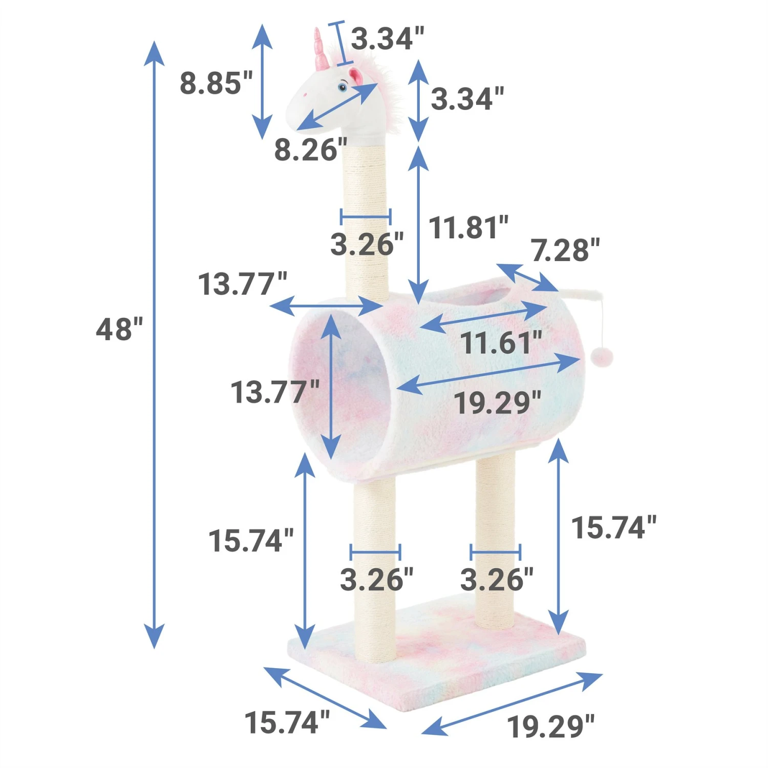 Frisco is bringing your kitty all the amenities with the Animal Series Cat Tunnel with Scratching Post! For an animal lover, this is the perfect spot for all a cat’s favorite things, from scratching to napping to playing. Whimsical unicorn, lovable llama or super-cute sloth—which one is right for your kitty? Whichever you pick, your feline friend is getting the best with three fully wrapped sisal posts, an elevated tunnel for a bit of privacy and a dangly toy hanging from the tail.
