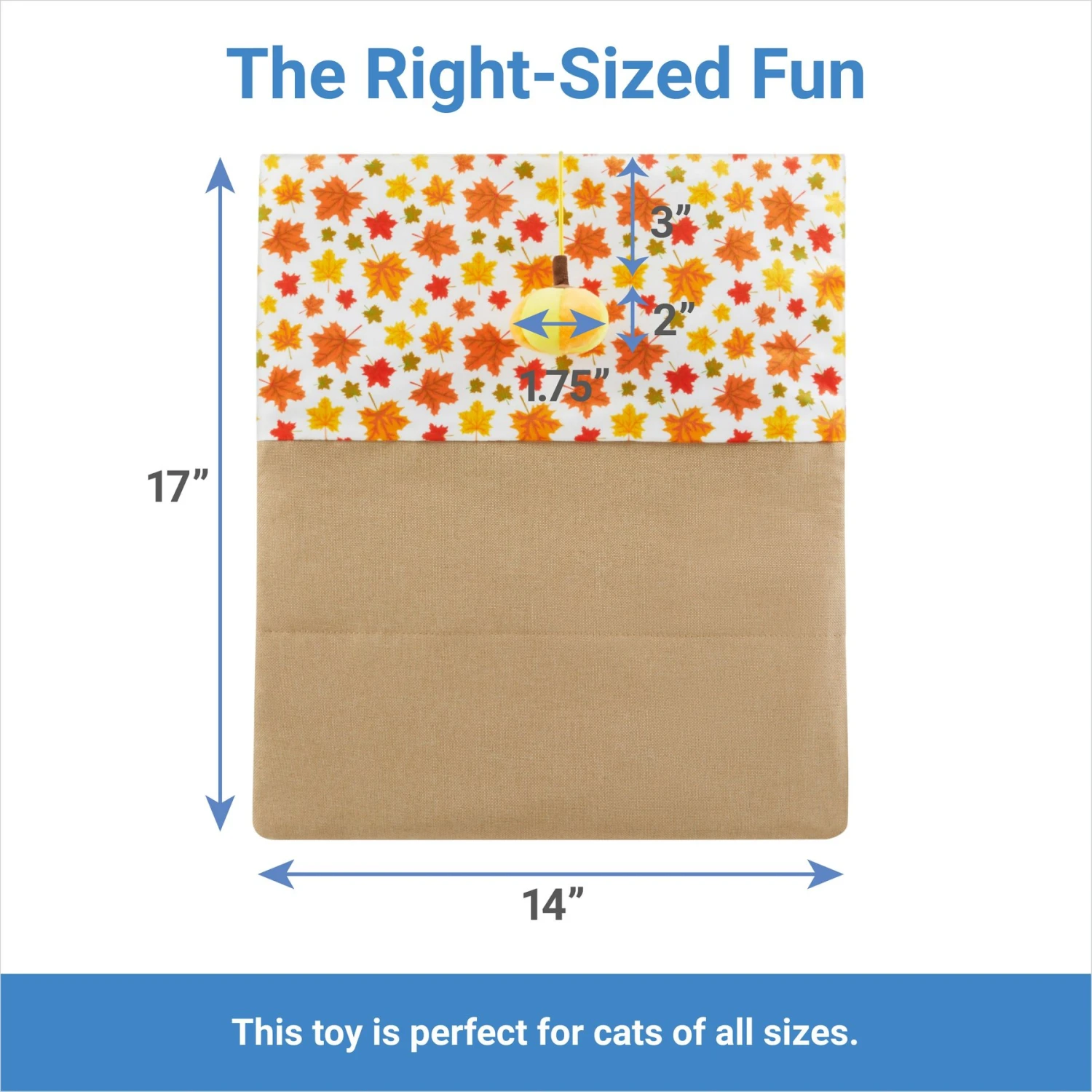 - Frisco fall leaf cat play sack has your kitty’s hiding, napping and playing needs covered in one cozy bundle that’s perfect for the season.