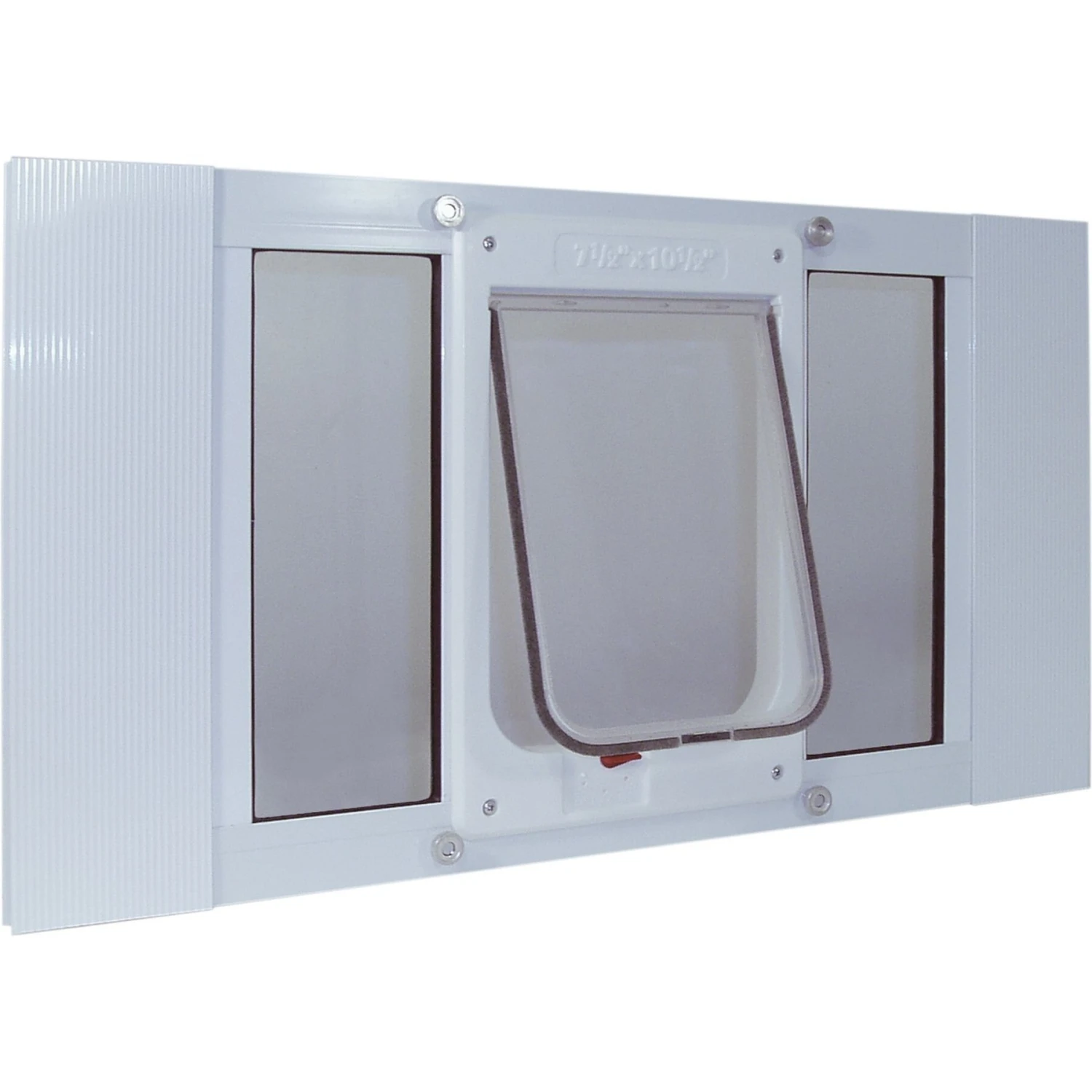 Keep your chubby kitty happy and safe with the Ideal Pet 23- to 28-Inch Sash Window Chubby Kat Cat Door! Specially designed with aluminum sash windows, it’s your furry friend’s door to fun and adventure. Created with a high-quality, white finish construction, this purr-fect cat door installs easily into most styles of aluminum sash windows. It’s adjustable in width and the cat flap sash window door height is 15 and one-eighth inches so your chubby feline friend can easily go outside and come back in whenever she likes.