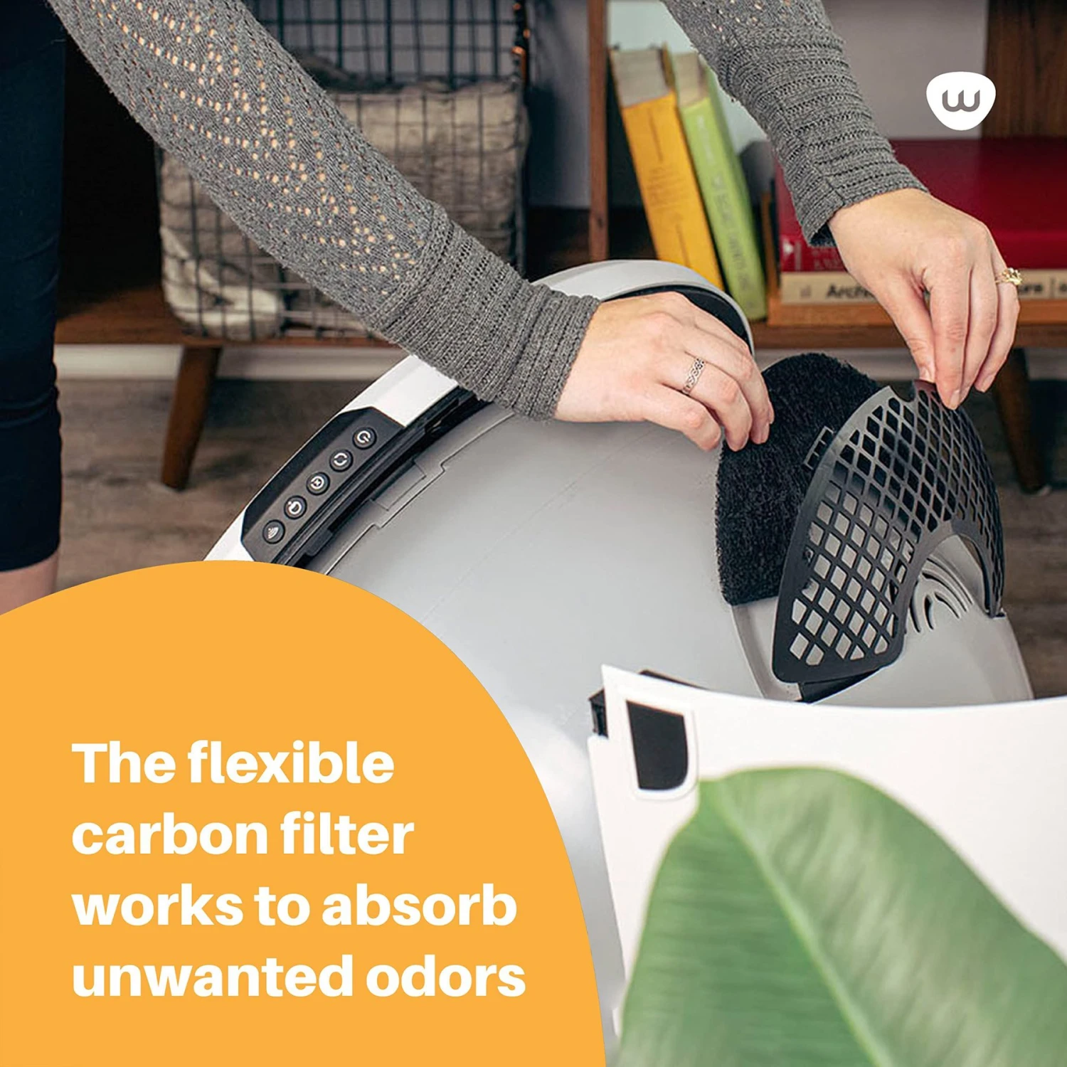 - Carbon filter replacement pack absorbs unpleasant cat litter smells.