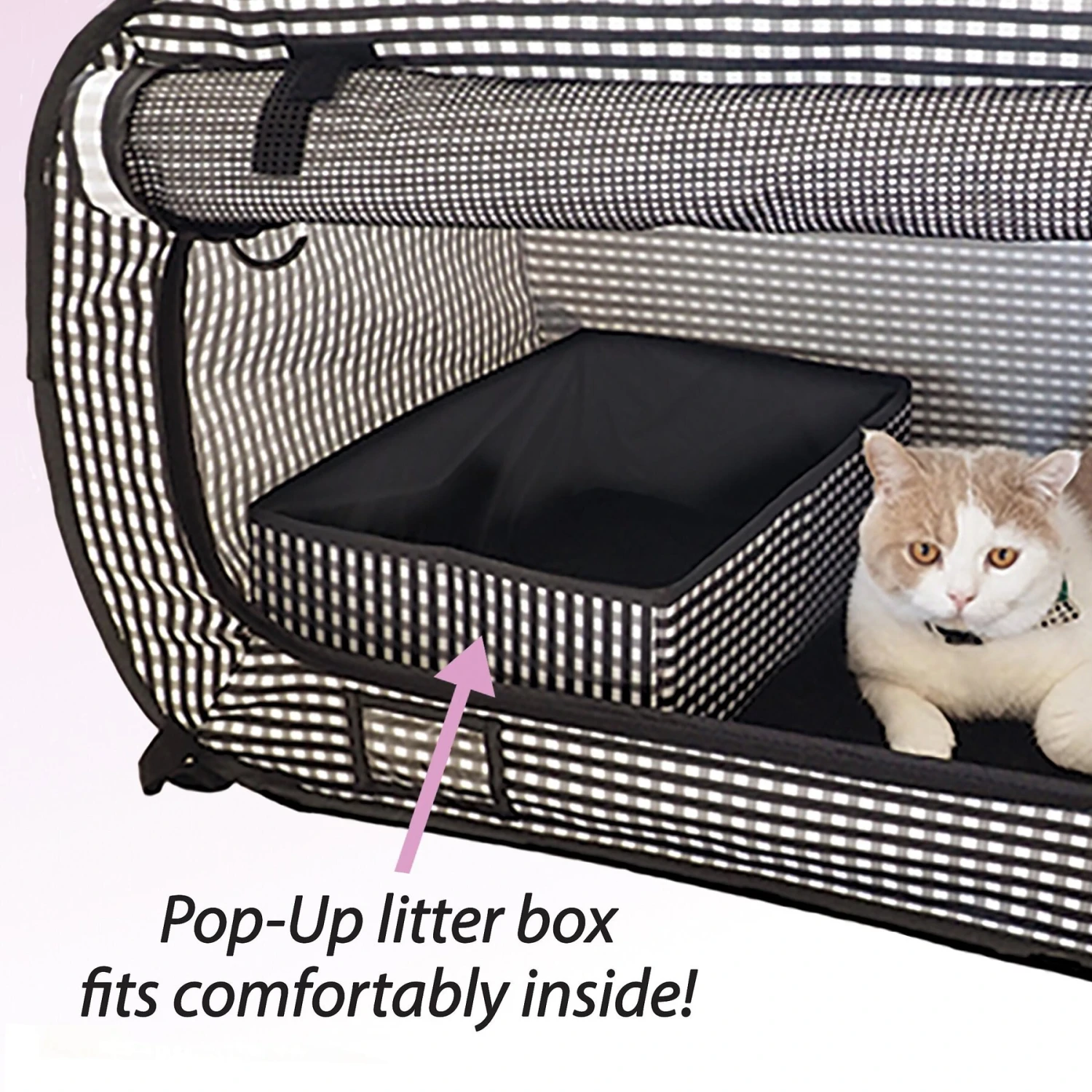 - Litter box can be folded down and snapped shut for convenient portability.