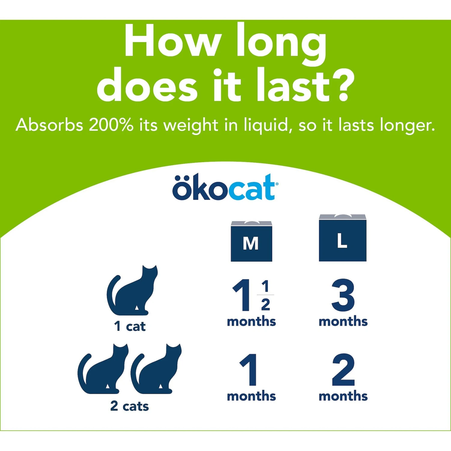 Help your furry friend breathe a little easier with Okocat Dust-Free Unscented Non-Clumping Paper Pellet Cat Litter. This super soft, paper pellet cat litter features low-tracking pellets made entirely from reclaimed, clean white paper fiber. The dust-free formula is fortified with long-lasting, plant-based odor control that suppresses ammonia odors. It creates a cleaner pour that’s healthier for your kitty, family, and home and completely absorbs all liquid for easy cleanup. This plant-based litter has no artificial fragrances, harmful chemicals, inks, dyes, mined clay, or silica. It’s the purr-fect choice for cats with respiratory ailments, homes with allergies, or post-surgical needs.