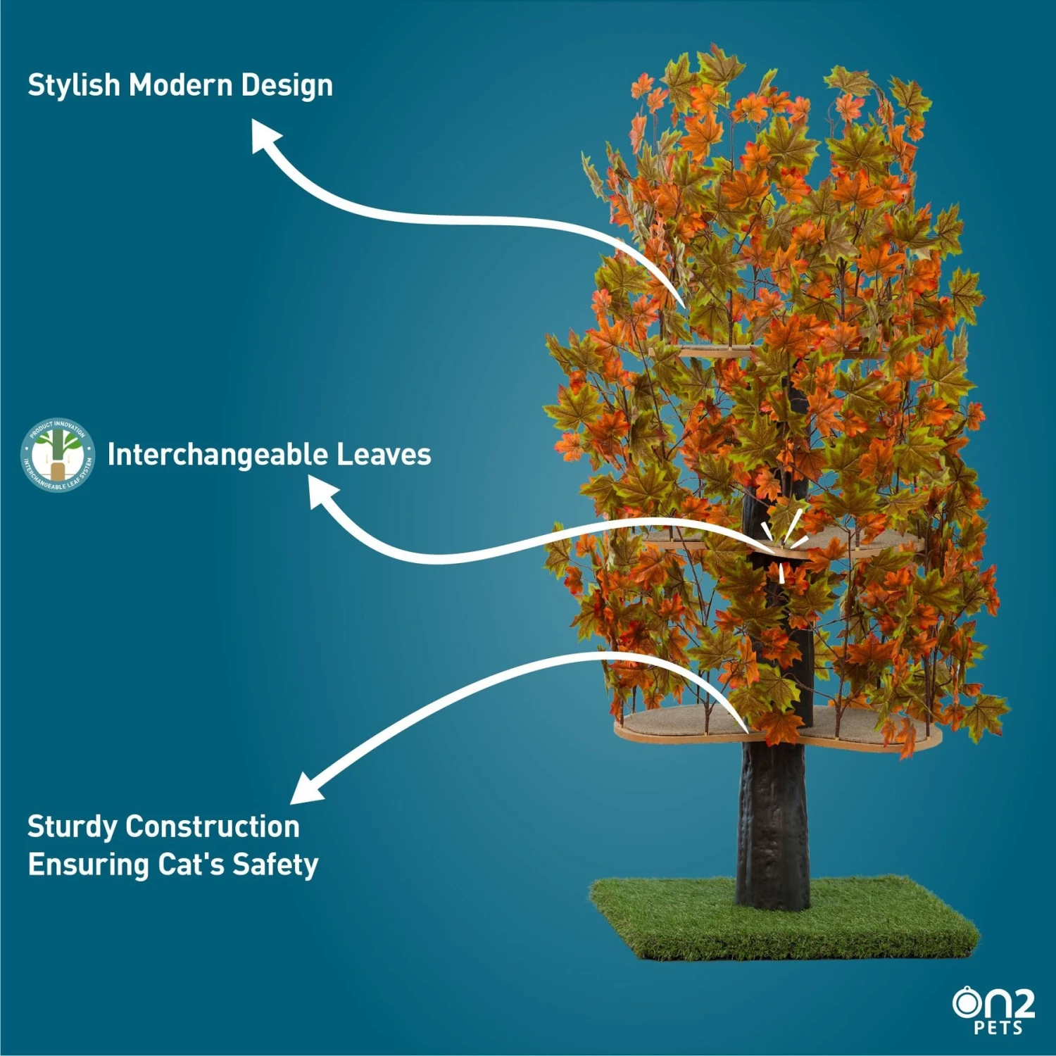 Your feline friend will be in tree-climbing paradise with On2Pets Square Modern Cat Tree! This innovative, modern cat furniture will let your kitty have the experience of a great outdoor climb without ever having to leave the house. Satisfying your cat’s instincts to stay high and out of sight, she can survey the world from behind the silk-leaf canopy, hidden and secure. This realistic cat tree is a purr-fect blend of form and function—not only will your kitty have a comforting place to relax, the squared design of the cat perches and various color options of the faux-leaf canopy will bring a bit of nature right into your home.