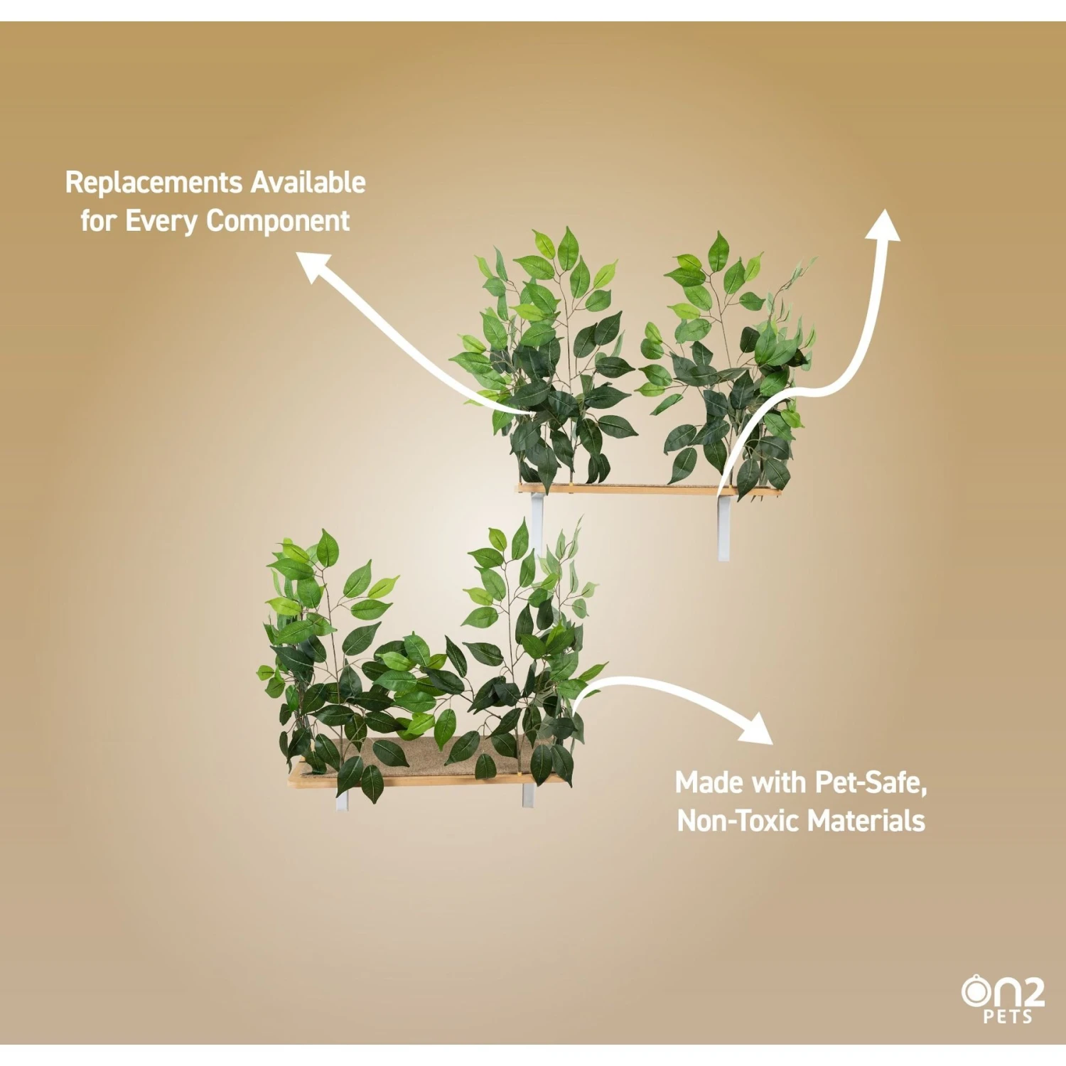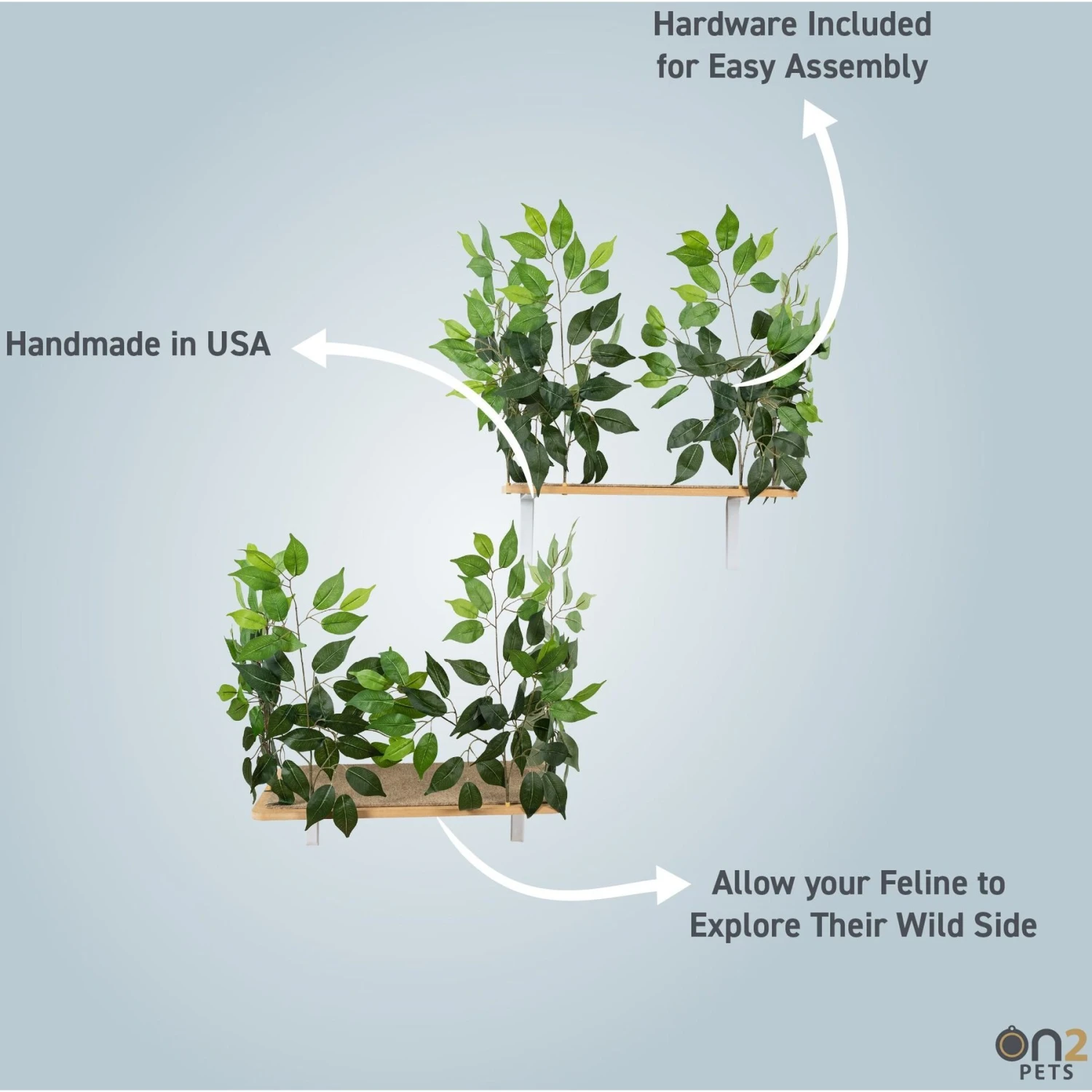 Let your furry friend relax just like she would in nature with On2Pets Cat Canopy Shelves. Available in multiple designs, these perches feature foliage like a tree branch and give your kitty a place to climb, stretch, hide or take a nap. They have soft and warm carpet with smooth silk leaves and plywood walls to provide support. Designed for indoor use, these shelves also fit with most home décor with a stylish finish. Let your paw-tner show off her wild side with On2Pets Cat Canopy Shelves.