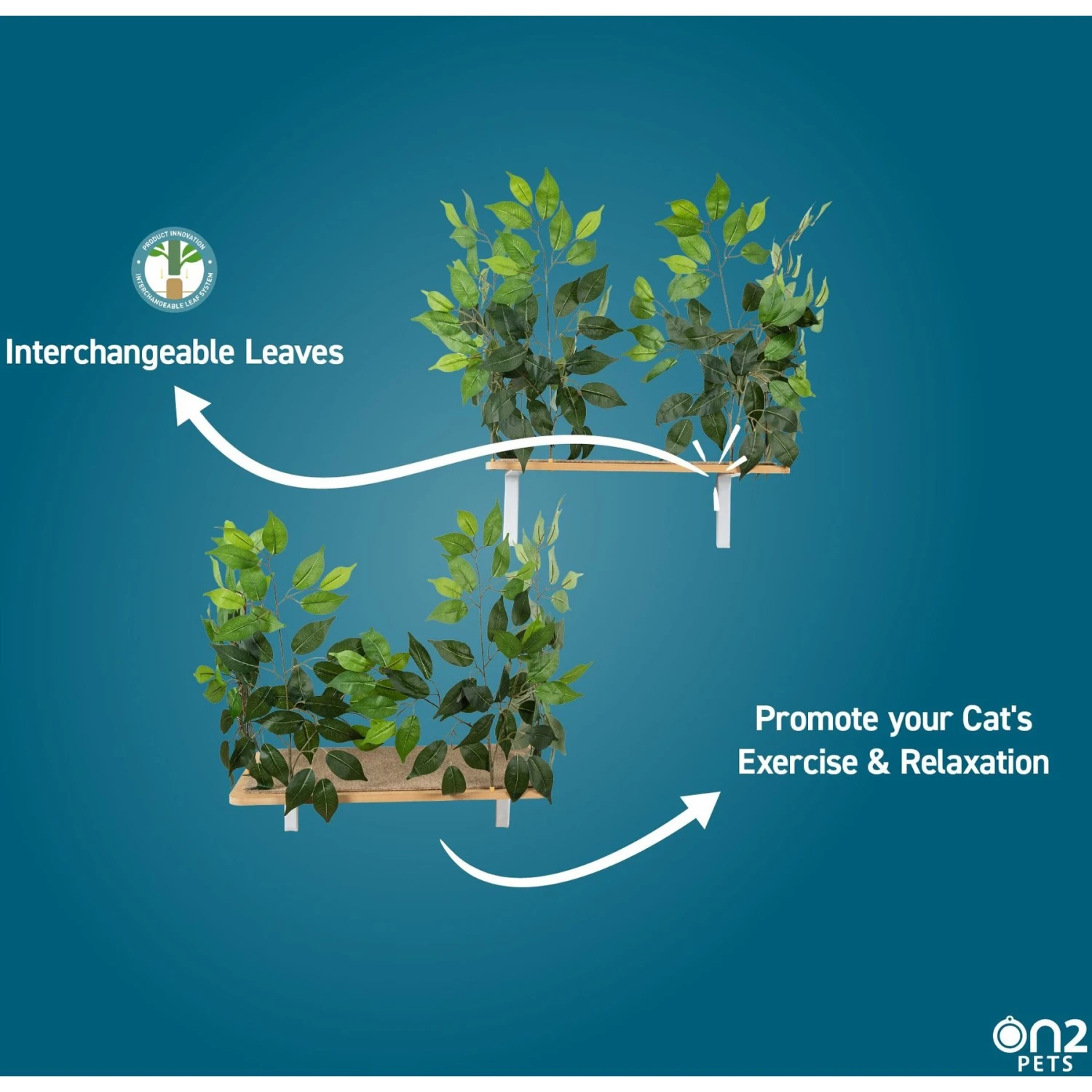 - Unique shelves that feature foliage like your cat would see in the wild.