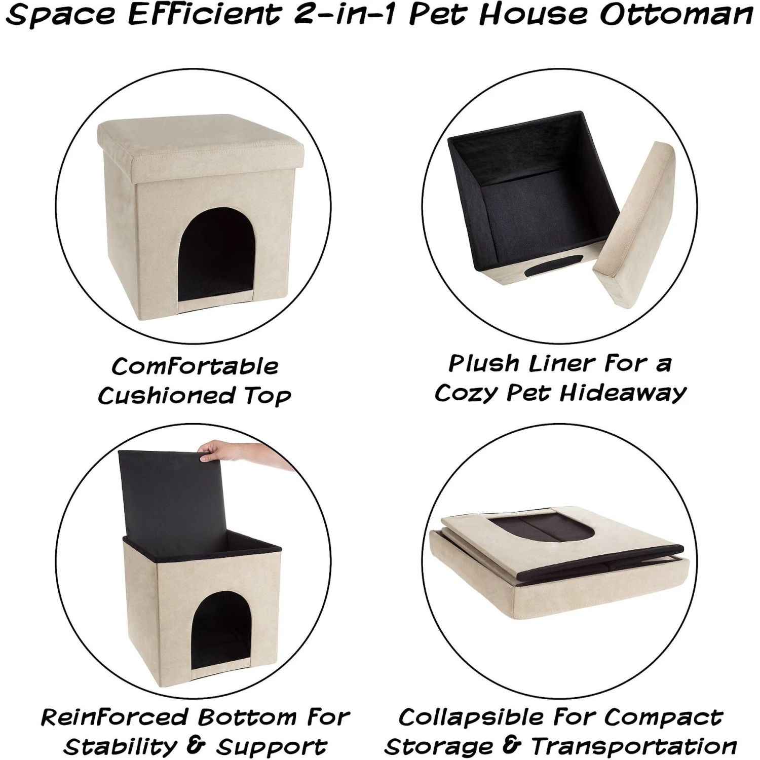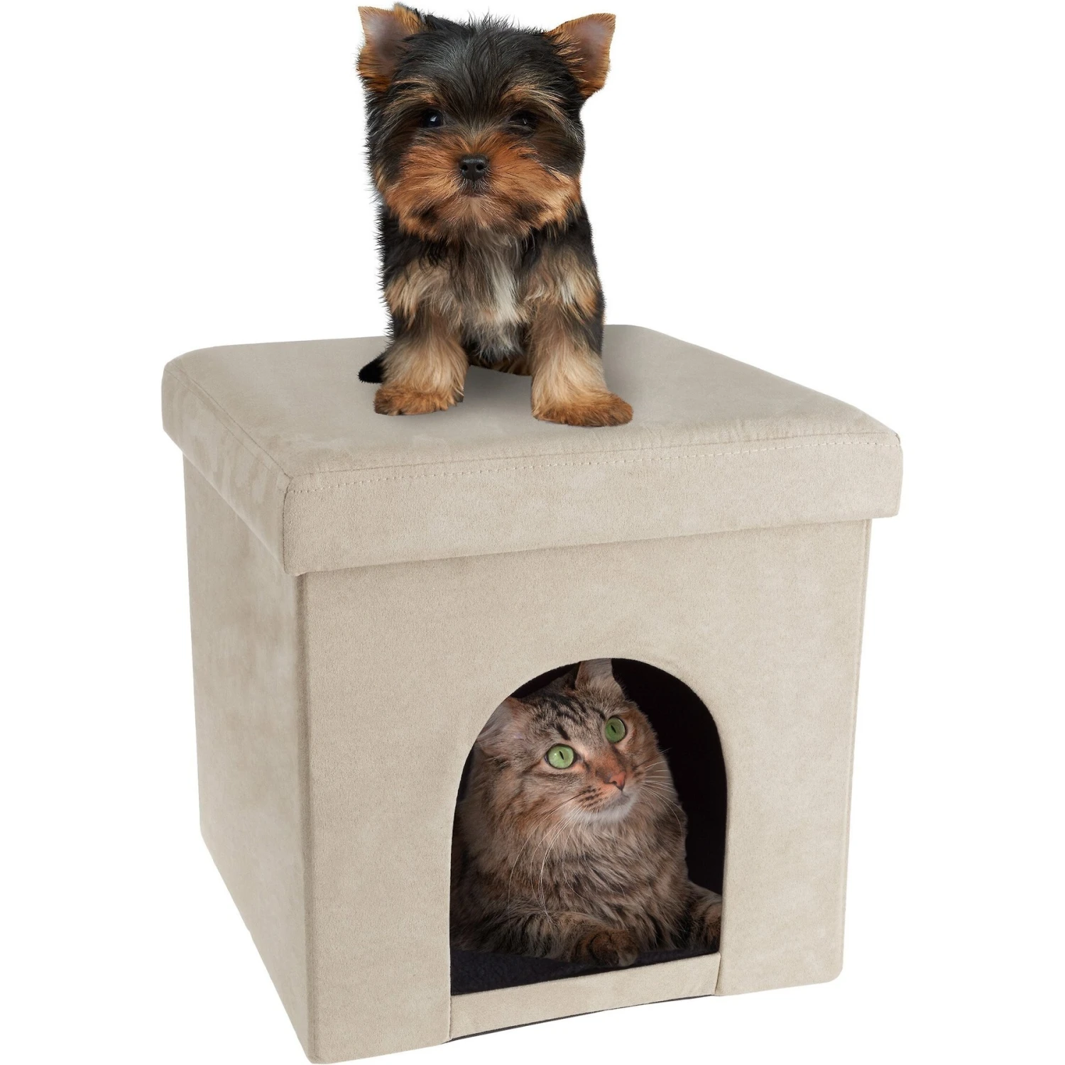 The Pet Adobe Ottoman Dog & Cat House creates a multifunctional space for your furbaby. Your best friend can curl up inside the small crate inside, or they can climb up on the top to lounge. The ottoman doubles as a footstool, too. It’s made of a durable microsuede and has comfy padding on the top. It’s reinforced for stability and support, but when you don’t need it, it collapses down for easy storage.