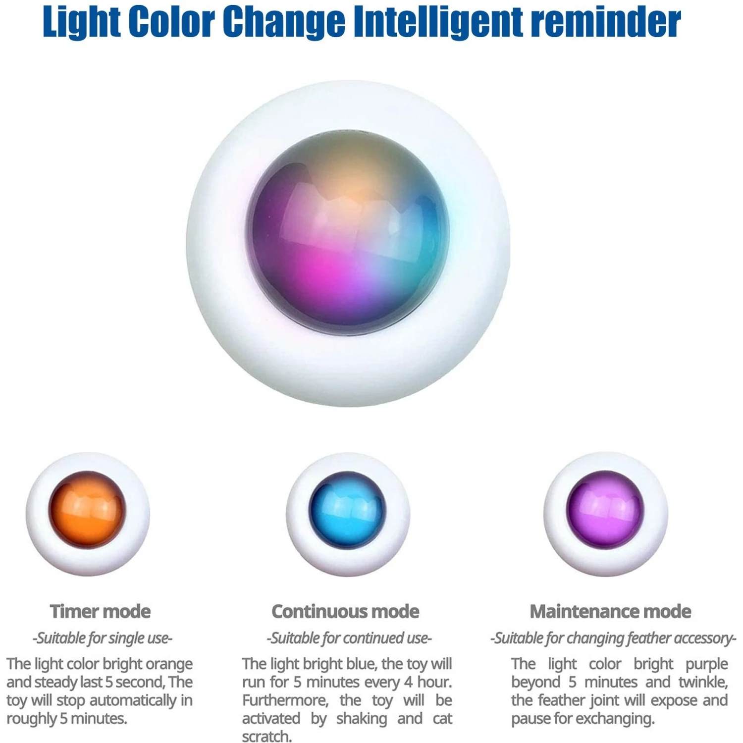 - Features like randomly changing colors and different feather expansion speeds help to encourage your kitty to play.