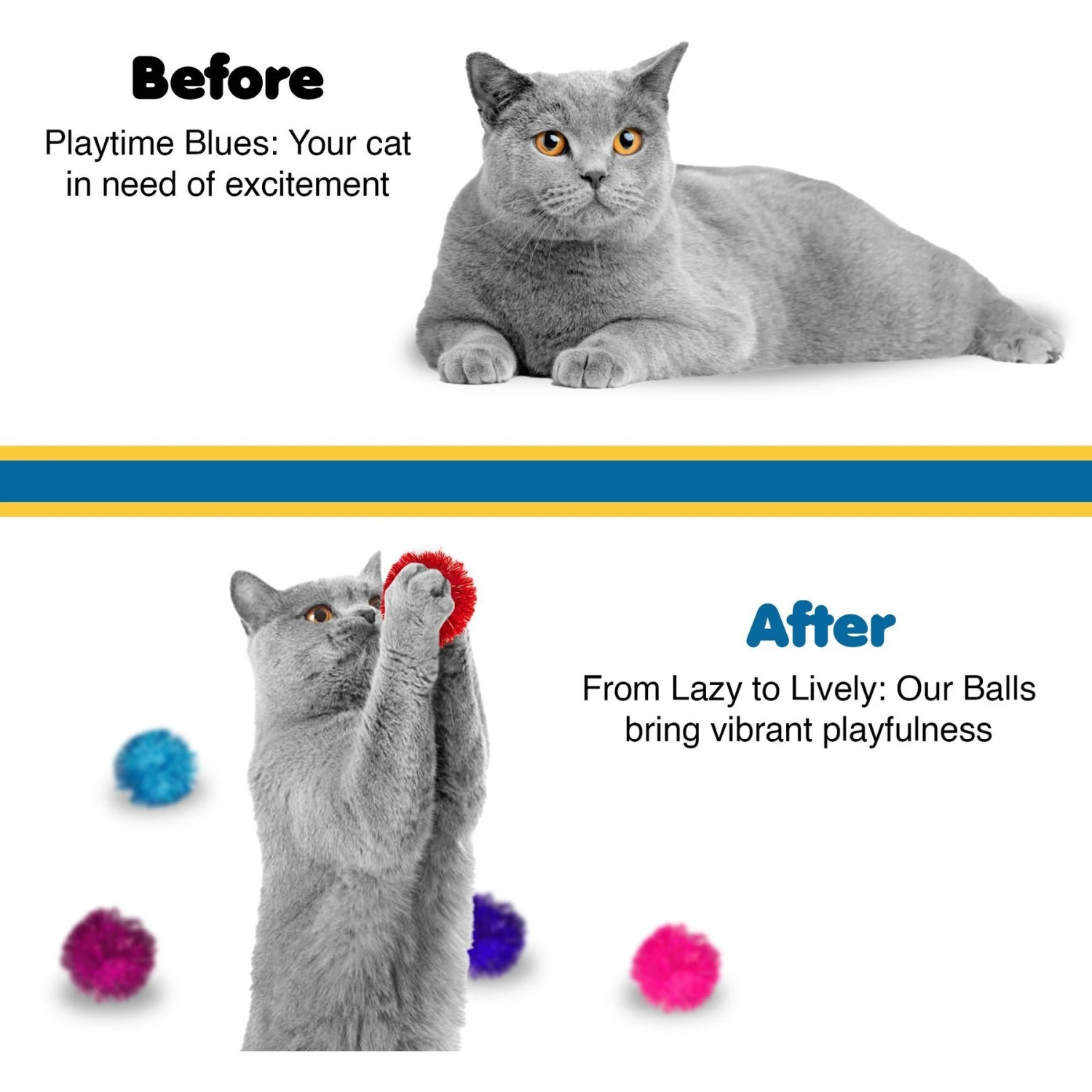 - Beautiful and bright assorted colors to grab kitty’s attention.