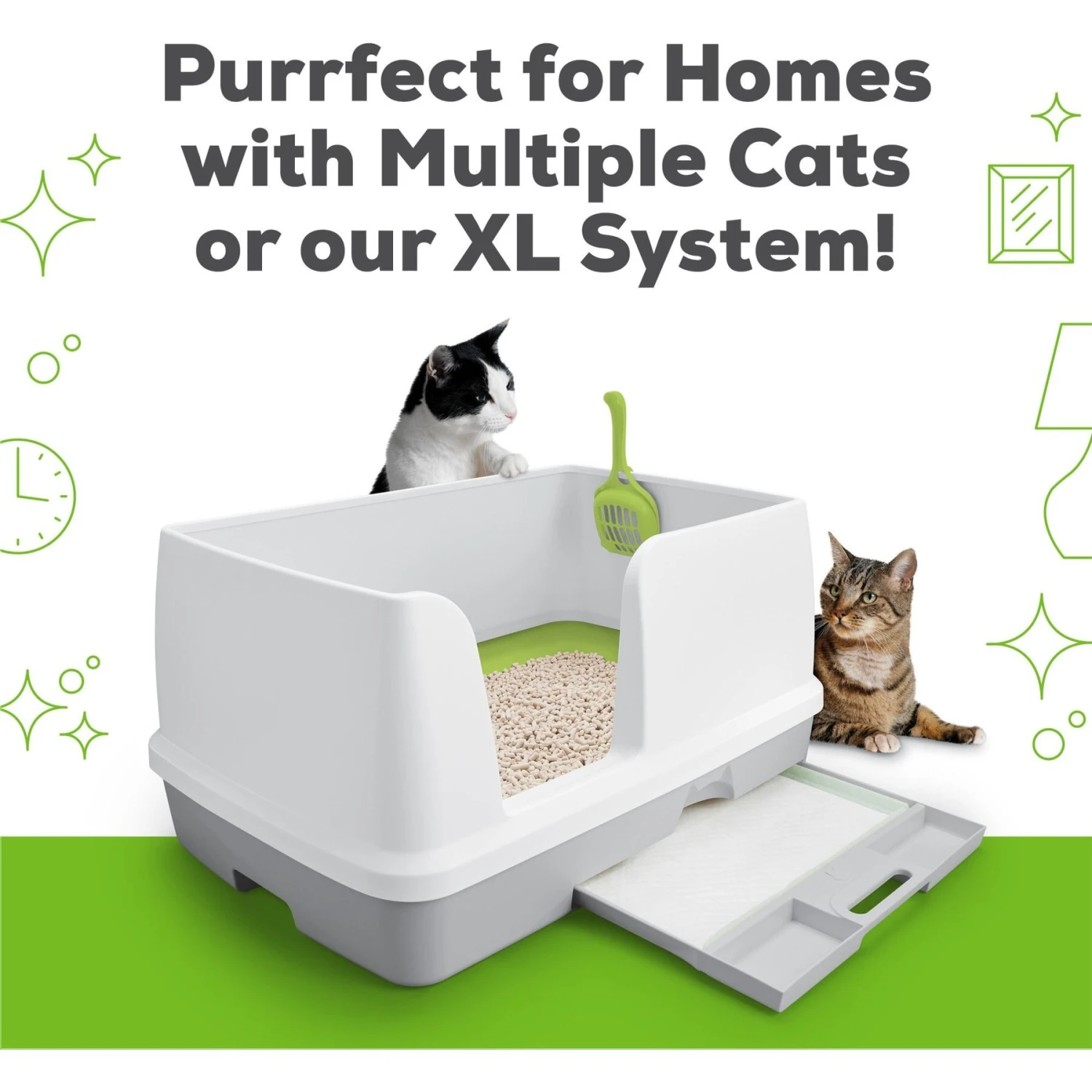 Toss out that old box completely once your cats have started using the BREEZE system for all of their potty needs. Animal behaviorists recommend multiple cat households have multiple litter boxes: one system per cat, plus one additional system (2 cats = 3 litter systems).