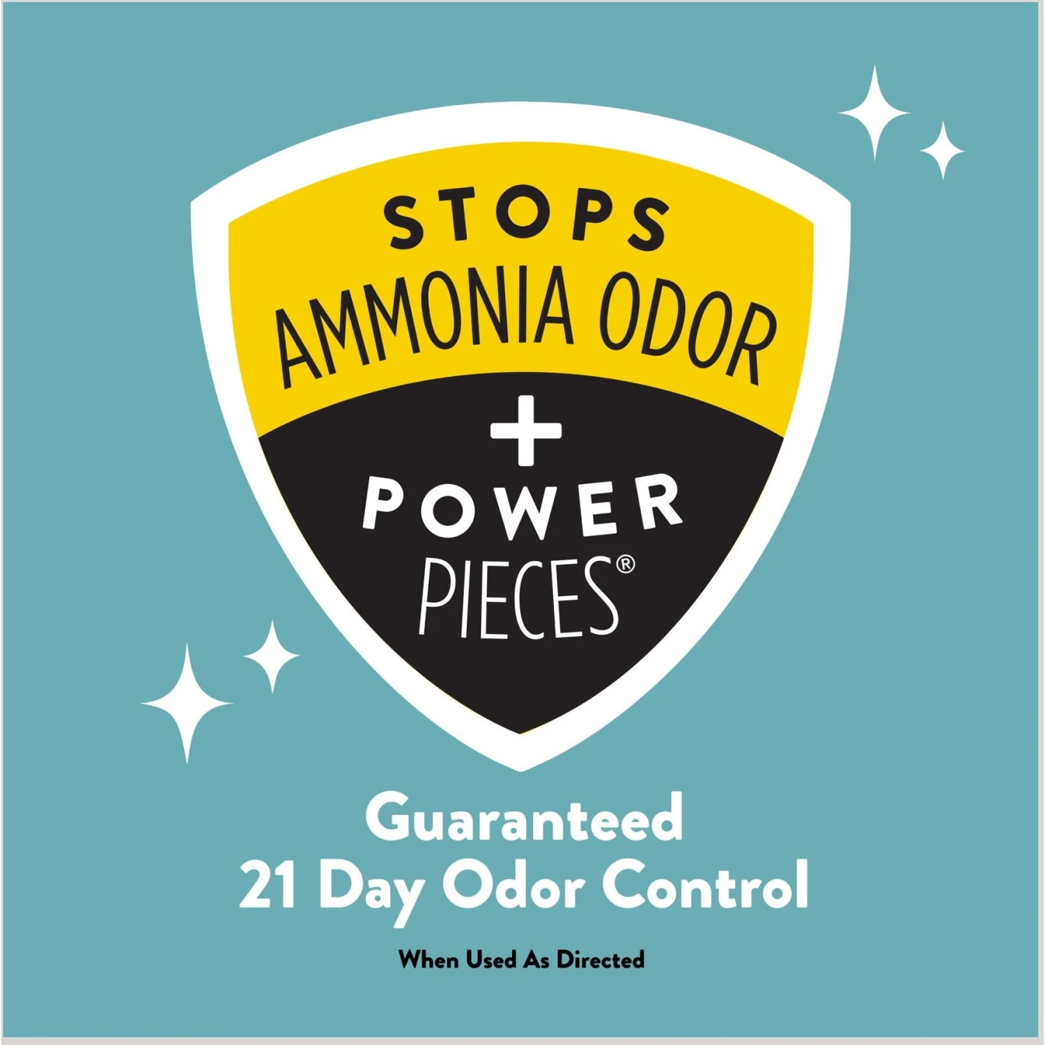 Lighten your litter box duties with the powerful performance of Purina Tidy Cats Tidy Max LightWeight 24/7 Performance for Multiple Cats Clumping Litter. Half the weight of the leading clumping kitty litter, this lightweight litter is easy to carry, pour and store! The odor control cat litter gives you around-the clock-protection, leaving more time for fun with your feline friends. Tidy Max moisture-activated Power Pieces absorb moisture and odor, helping keep the litter box dry for your pals. Best of all, Tidy Max Ammonia Blocker prevents ammonia odors for up to 2 weeks when used as directed. Altogether, the scoopable cat litter makes litter duties easy. Strong clumping action makes scooping simple, and the low dust cat litter gives you a clean pour. This recyclable box packaging even has handles for easy carrying and pouring. Inside, a leak-proof bag protects against shipping damage and weather. Just pull open the perforated bag top, then pour or scoop this advanced lightweight clumping litter for day and night odor control.