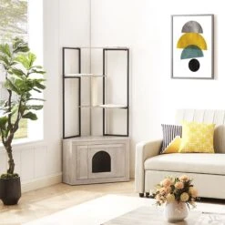 Unipaws Corner Box Enclosure With Cat Tree Tower Cat Litter, Weathered Grey, Medium