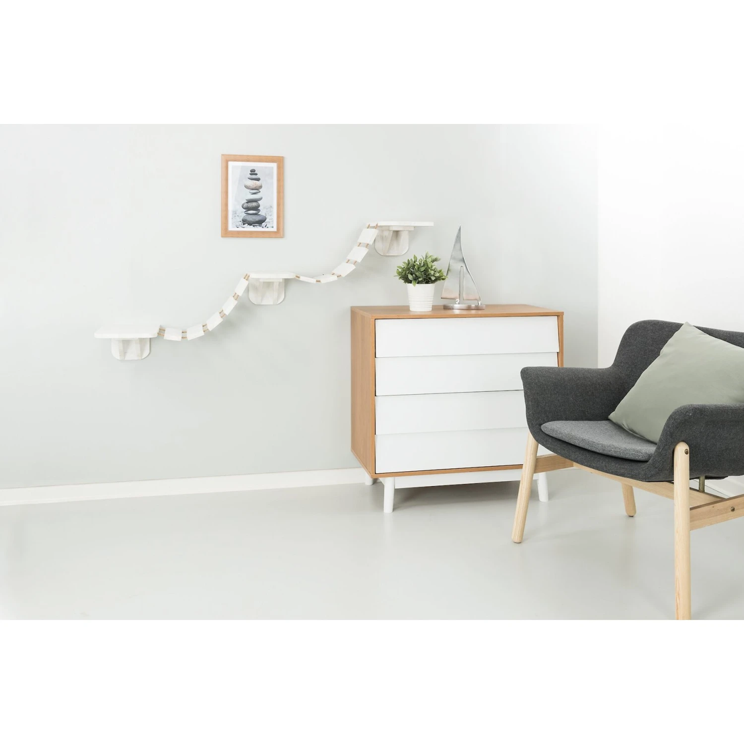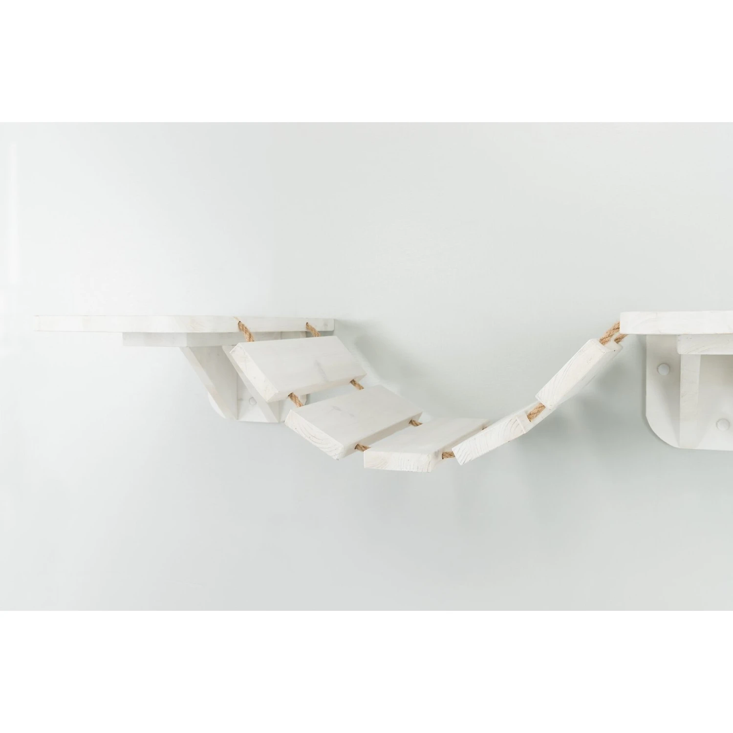 Add incredible style and sophistication to any room with the Trixie Wall Mounted Cat Bridge. The innovative design allows you to enlarge the amount of area your feline friend has to play in, providing her with the elevation she craves to perch and observe. Compared to typical cat trees, this space-saving solution mounts to a wall so your pal has the ability to explore new and exciting heights! Three separate lounging platforms are linked together by a wooden bridge that’s both modern and cool, effortlessly matching your home’s decor so you can impress any guest that visits.